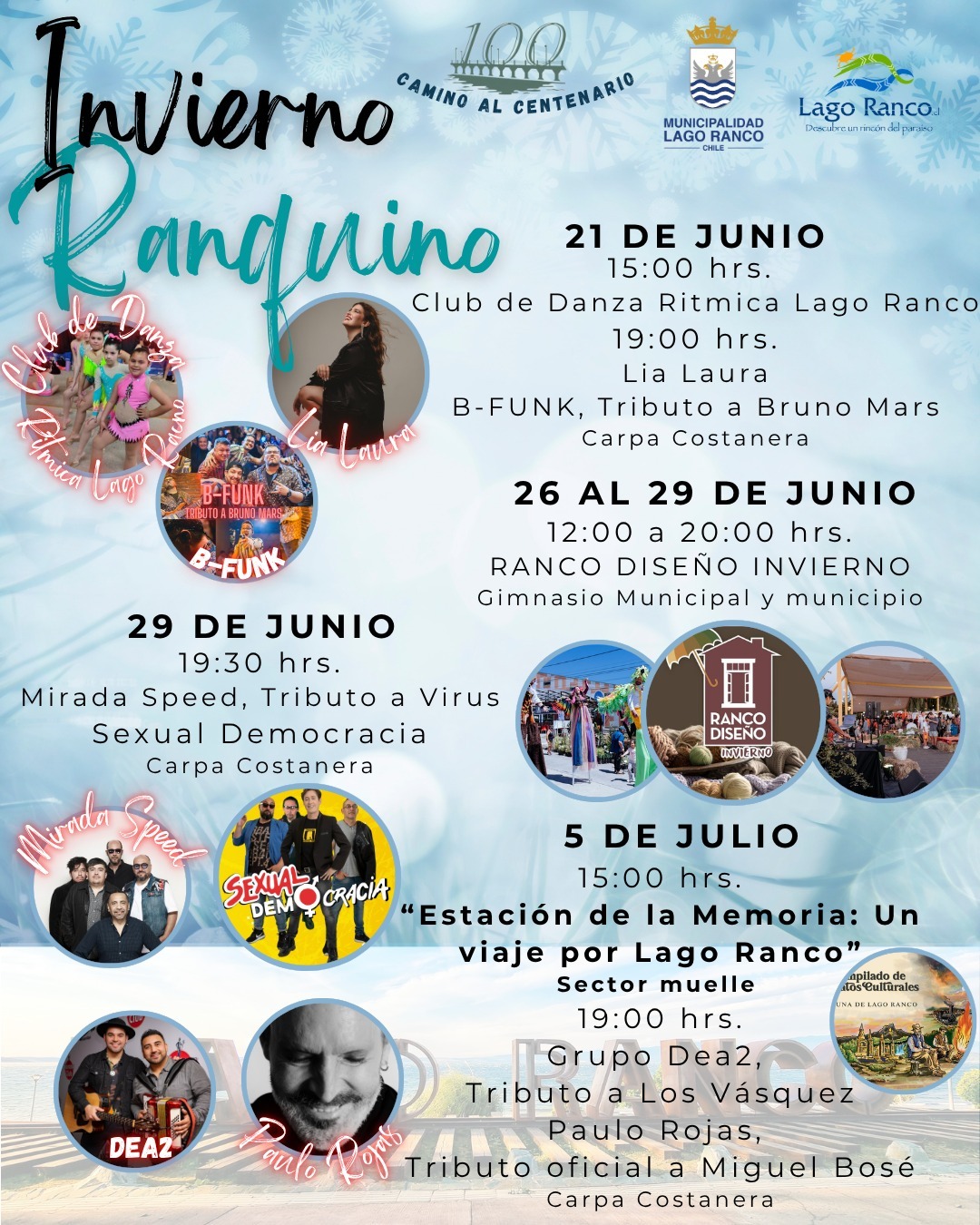 Con la presentación de la icónica banda del rock Sexual Democracia, tributos a Bruno Mars y Virus, y la feria Ranco Diseño, la comuna se prepara para su gran fiesta invernal