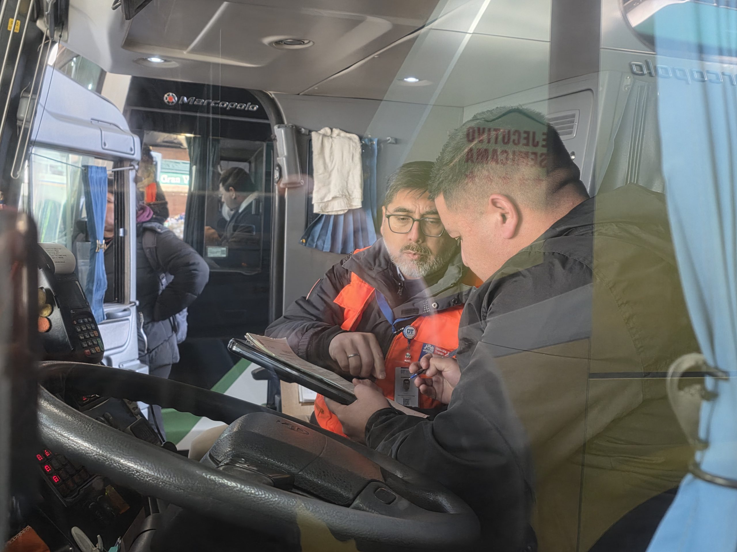 Los controles estuvieron centrados exclusivamente en aquellos buses que realizaban viajes de más de cinco horas. Para ello, en los terminales de la región, los fiscalizadores subieron a las cabinas e imprimieron desde el dispositivo automatizado instalado junto al volante el comprobante de registro de jornada y descanso cumplido previamente por cada miembro de la tripulación.