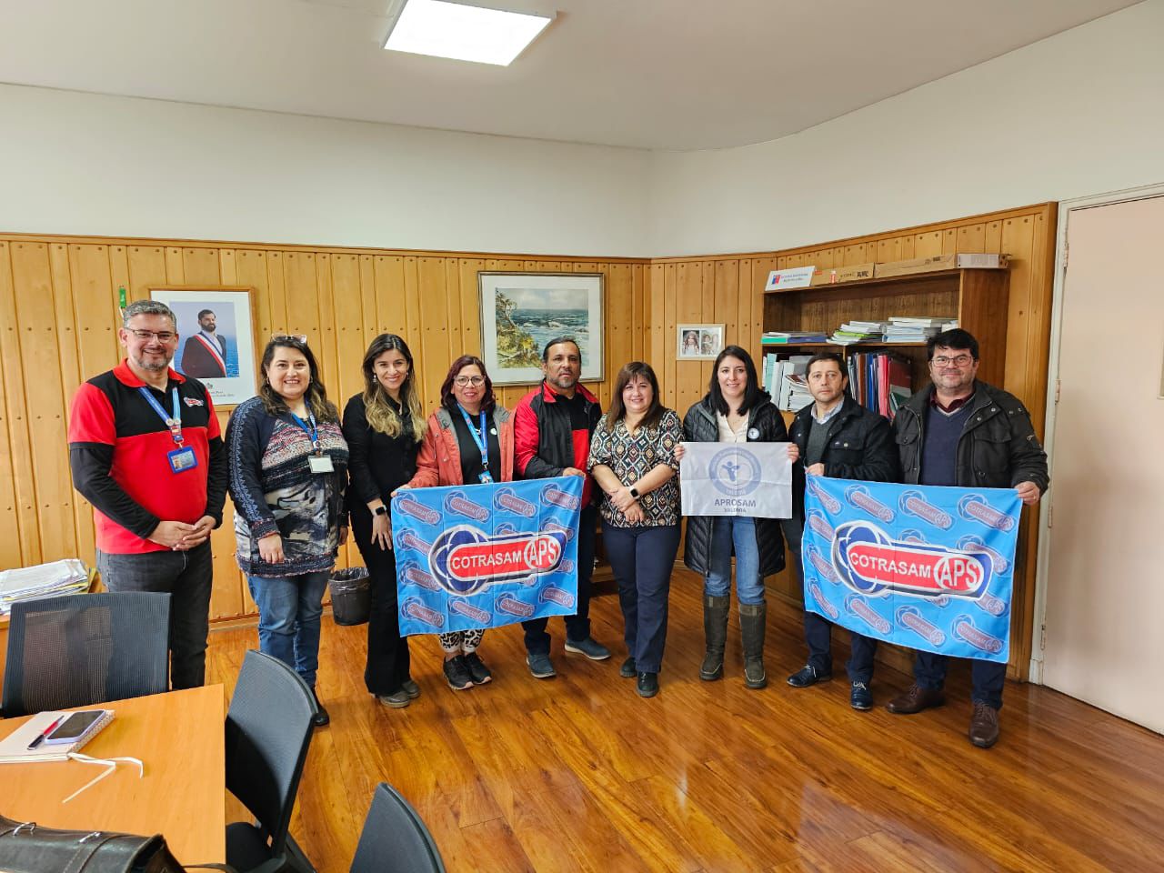 Una fructífera reunión sostuvo la Asociación de Profesionales de Salud Municipal APROSAM Valdivia, con la directora del Servicio de Salud Los Ríos Dra. Mariana Rubilar, por la Encargada de APS Jeniffer Roy y la Encargada de Relaciones Laborales Paola Coñan, el presidente Nacional de COTRASAM, Juan González Bustamante en conjunto con el Director Nacional Cristian Winkler Santander, el encargado de la Secretaría Jurídica, además de representantes de distintos gremios de la región, el objetivo fue potenciar aún más el trabajo colaborativo, pero con una ruta clara, para abordar las temáticas laborales que mueven y promueven espacios de trabajo comprometidos con las familias del territorio, pero donde los derechos de los trabajadores no sean vulnerados, ni relegados en pos de un objetivo.